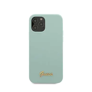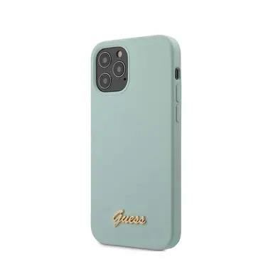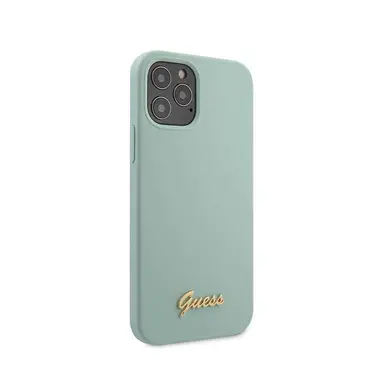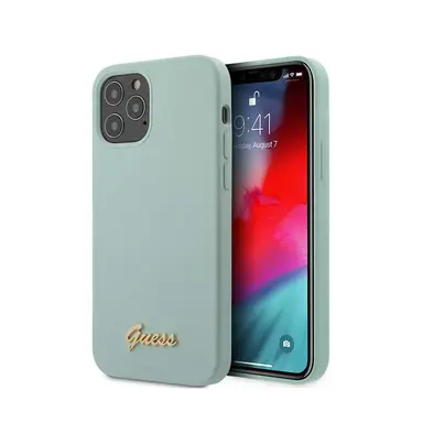 Guess Liquid Silicone Case met Metaal Logo voor iPhone 12 Pro Max – Lichtblauw