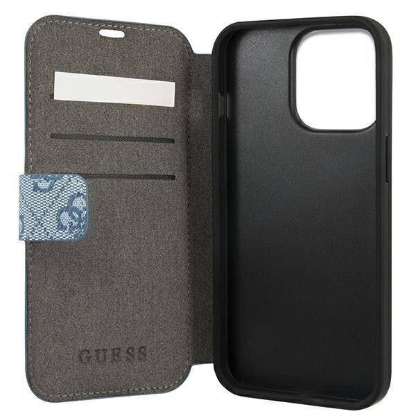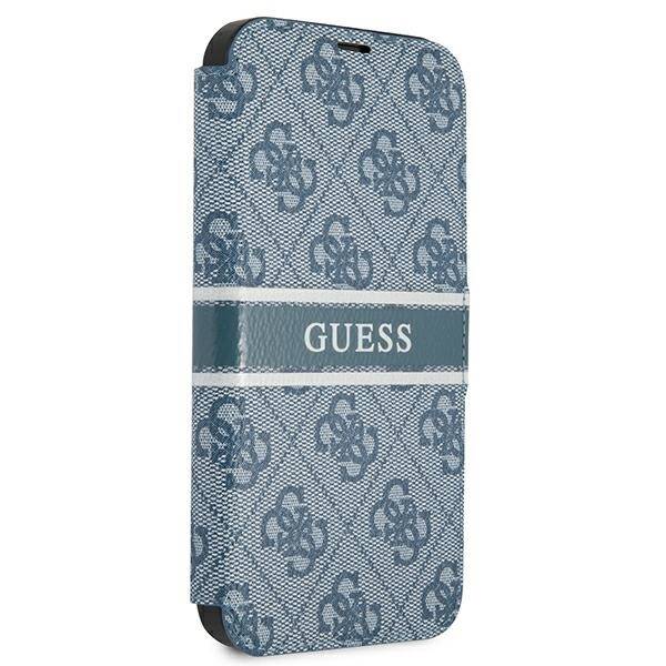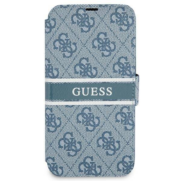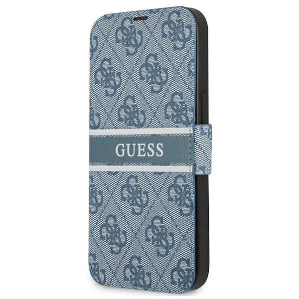 Luxe PU leren folio hoes van Guess voor de iPhone 13 Pro (6.1 inch). Deze stijlvolle hoes biedt uitstekende bescherming tegen krassen en stoten en is voorzien van het iconische Guess 4G-patroon met een opvallende gestreepte print. De case heeft een boekontwerp met ruimte voor kaarten, waardoor het zowel elegant als praktisch is.